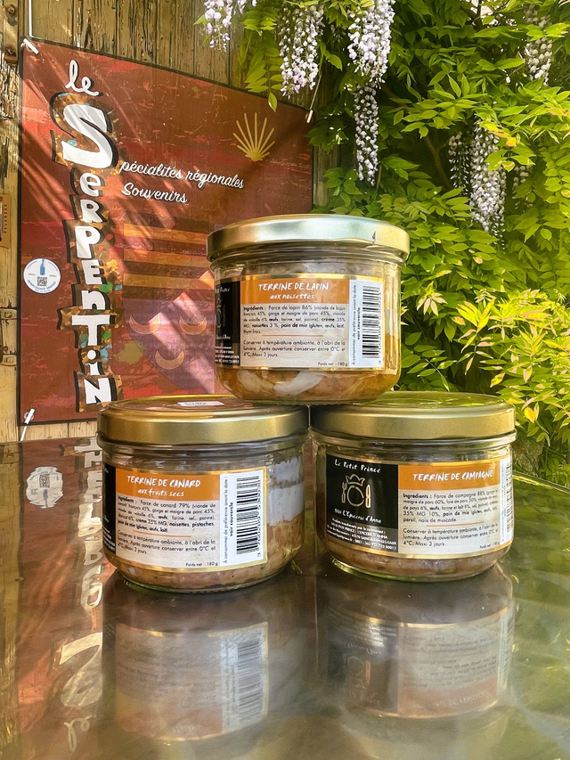 Farce de canard 79% (viande de canard français 45%, gorge et maigre de porc 45%, viande de volaille 6%, œuf, farine, sel, poivre)